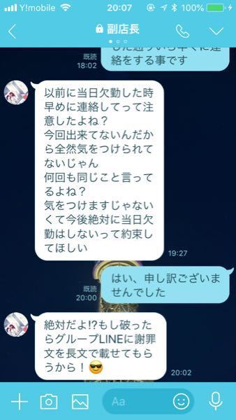 バイト欠勤の連絡を仕方なくlineで送ったら 謝罪含 感情が顕でおかしい Yahoo 知恵袋